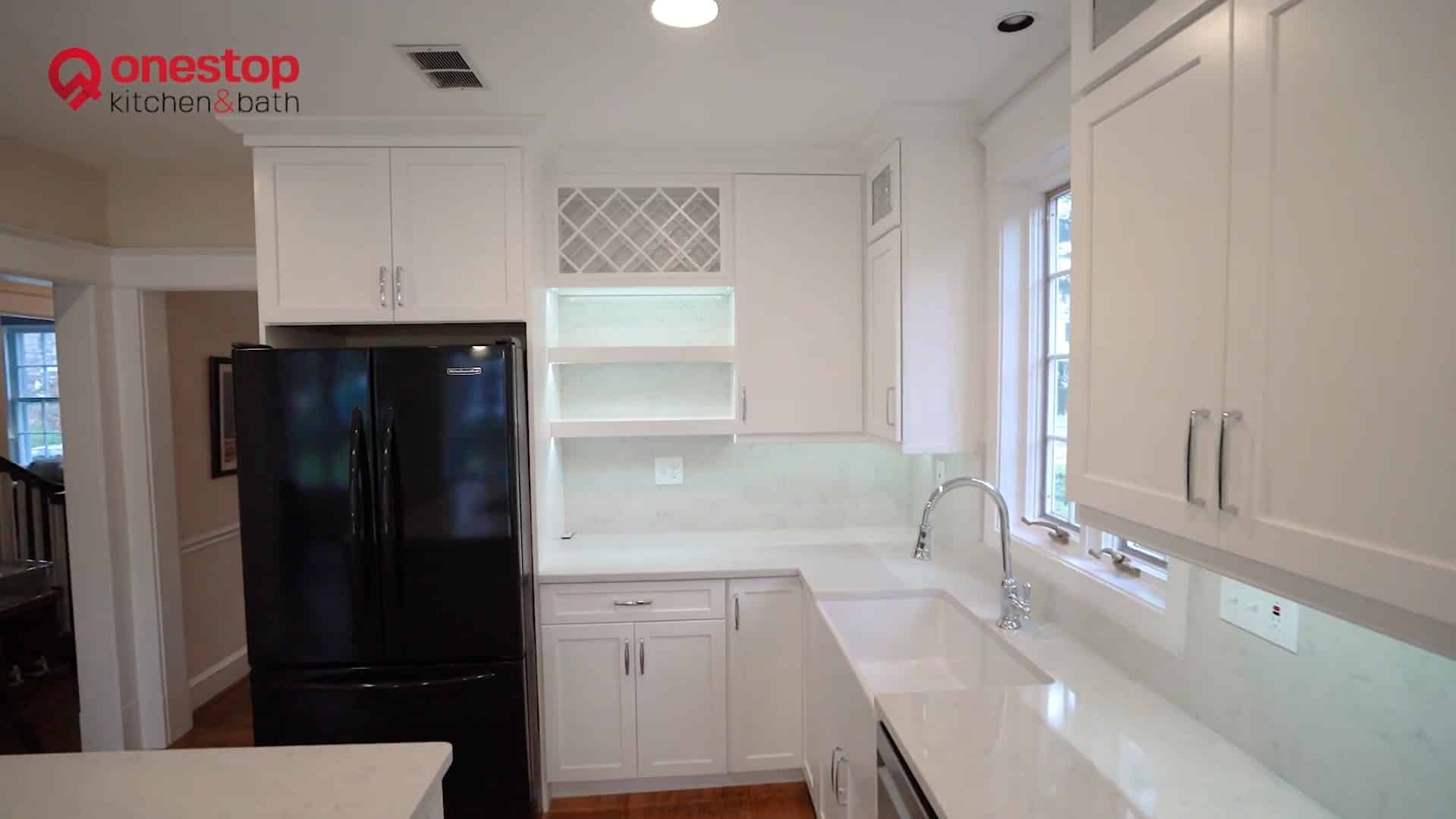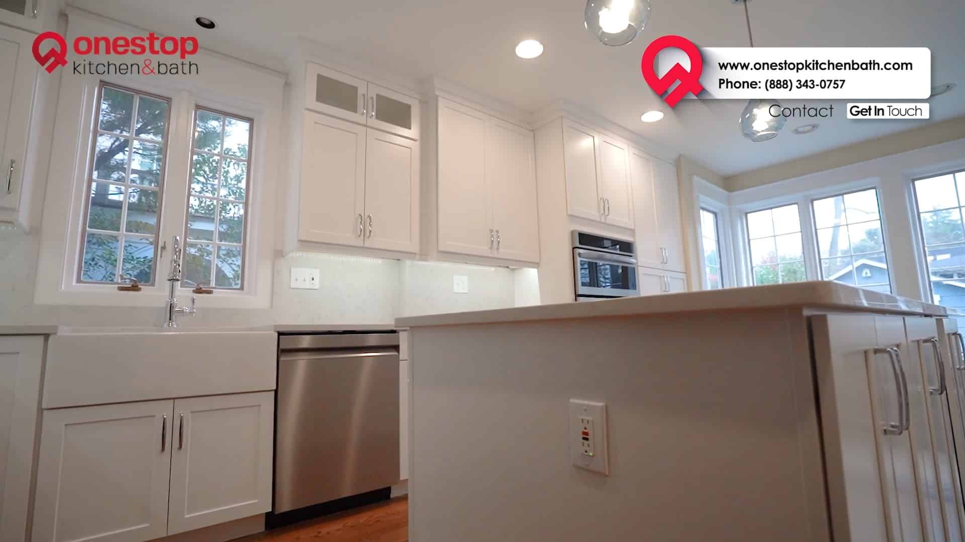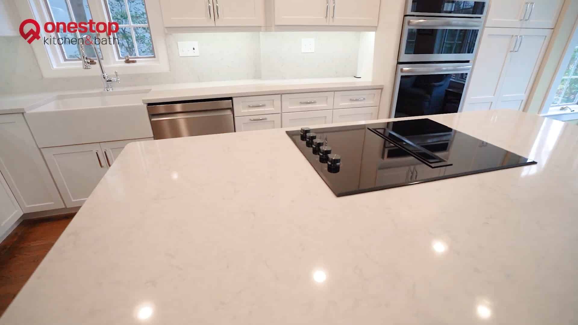 This modern white kitchen remodel blends clean design with everyday functionality. Custom white shaker cabinets with full-height storage maximize space, while a spacious quartz island with built-in cooktop anchors the L-shaped layout. Double wall ovens, layered lighting, and warm finishes create a bright, refined kitchen ideal for cooking and entertaining.