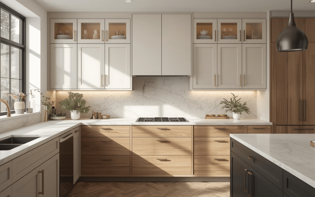 Choosing kitchen cabinets isn’t just about what looks pretty in photos. You need something that works with how your family actually lives. Think about whether you’re always cooking big meals or just reheating leftovers, if you have kids who need easy access to snacks, or if you love displaying your dish collection.