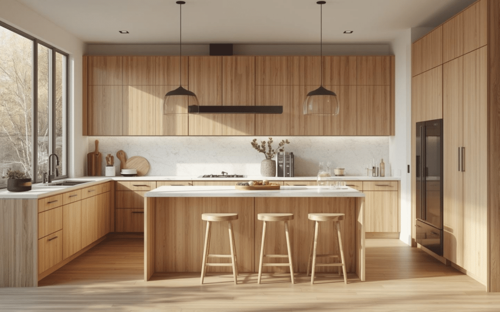5. Warm Natural Wood Cabinets