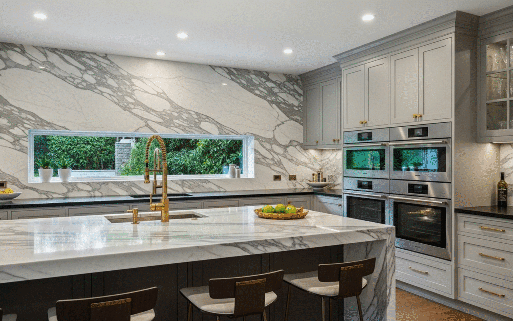 Premium countertop materials like quartz or granite